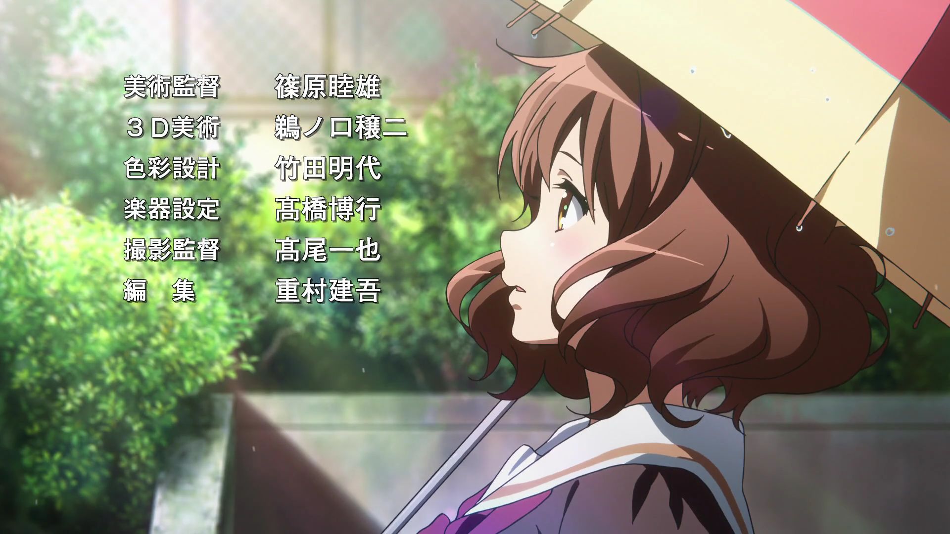 Strona wizualna i animacja stoi na najwyższym możliwym poziomie. Jest to prawdopodobnie najlepiej wyglądająca produkcja tego sezonu (jak nie roku – do tej pory). Konkurować z Hibike! Euphonium pod tym względem może tylko Owari no Seraph. Fakt ten oczywiście nie dziwi raczej nikogo, w końcu za tworzenie tego anime odpowiedzialne jest studio Kyoto Animation.