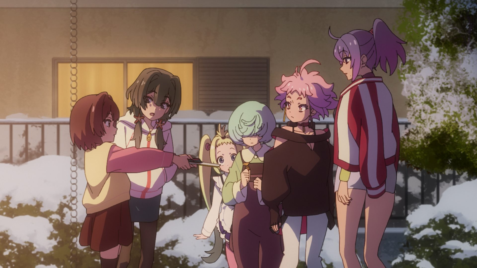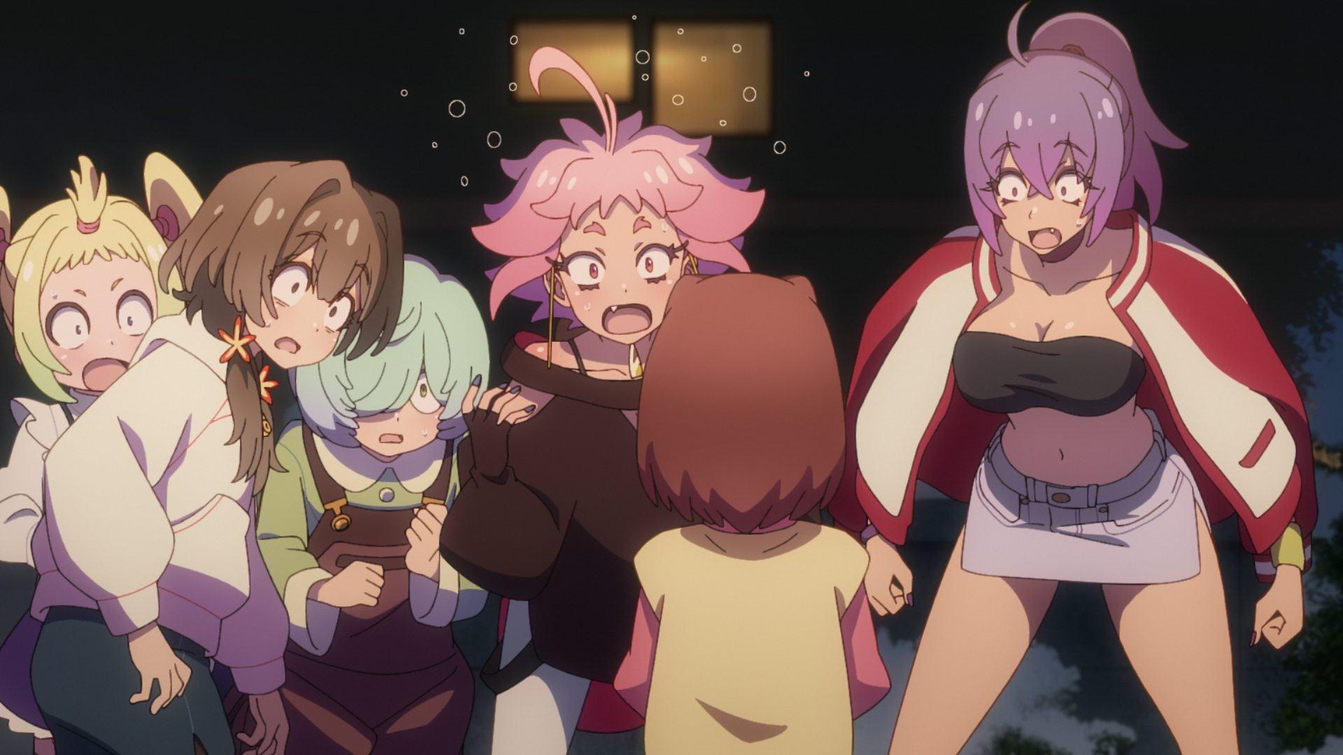 W Mayonaka Punch nie brakuje postaci – zarówno tych pierwszoplanowych, jak i drugoplanowych. Każda z głównych bohaterek dostaje swoje pięć minut. Każda ma jakieś swoje backstory, jednak nie wszystkim bohaterkom poświęcono tyle samo czasu. Jednak wydaje się to być dość naturalną konsekwencją formatu 12 odcinkowego. Przy takiej ilości postaci po prostu trzeba wybrać bohaterów, którzy są ważniejsi dla głównego wątku i ich historie bardziej rozwinąć.