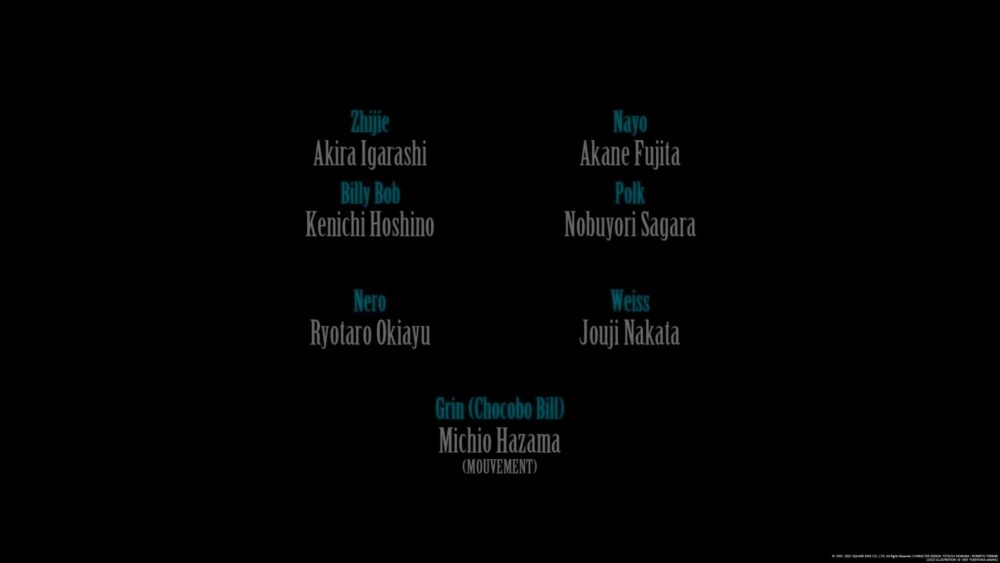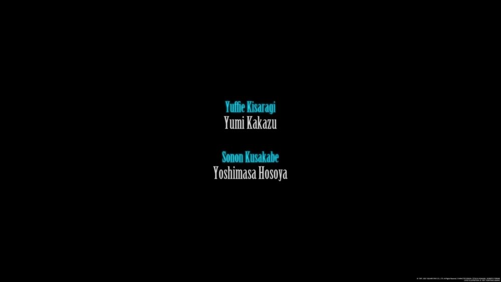 Za każdym razem jak opisuję warstwę audio poświęcam sporo uwagi głosom postaci. Robię to ponieważ jest to jeden z kluczowych aspektów, szczególnie w przypadku japońskich mediów, gdzie historie prowadzone są głównie w oparciu o postacie (dlatego też tak często zaznaczam, że używam oryginalnych głosów, ponieważ dubbingi całkowicie zmieniają to jak odbieramy dane postacie zawsze). Jak nie trudno się domyślić – nie inaczej będzie w tym wypadku. Kakazu Yumi jako główna bohaterka – Kisaragi Yuffie to po prostu mistrzostwo świata. Naprawdę trudno mi sobie wyobrazić kogoś lepszego w tej roli.